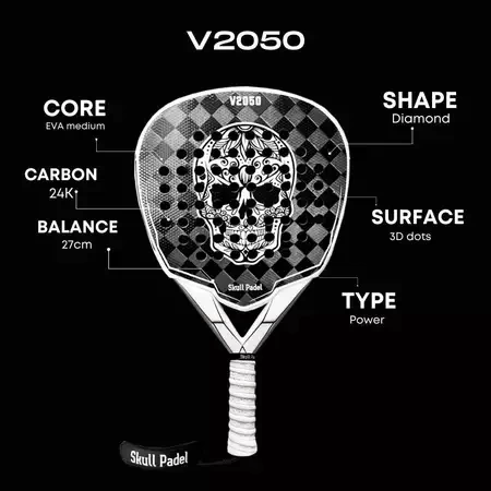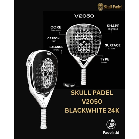 Skull Padel V2050 24K White Black | Brand New Kenalkan Skull Padel V2050 24K White Black, raket padel berbentuk diamond yang dirancang untuk pemain dengan gaya permainan agresif dan penuh tenaga. Menggabungkan karbon 24K, busa berkualitas tinggi, dan EVA rubber medium density, raket ini siap memberikan power maksimal di setiap pukulan, tanpa mengorbankan kenyamanan dan kontrol. Spesifikasi: Berat: 370 gram Bentuk: Diamond Frame: 100% Carbon Permukaan: 3D Textured Face Inti: Kombinasi Foam & Medium Soft EVA Tipe: Power Racket Teknologi Unggulan: - Carbon Fiber 24K Material karbon 24K berkualitas tinggi yang ringan dan kuat memberikan stabilitas serta kekuatan ekstra. Raket ini didesain untuk pemain yang mengincar pukulan eksplosif dan presisi tinggi di setiap rally. - EVA Rubber Core Dengan inti berbahan EVA medium-soft, V2050 memberikan sensasi pukulan yang solid, tetap nyaman di tangan, serta mampu meredam getaran secara optimal. Cocok untuk pemain yang menginginkan kombinasi tenaga dan perlindungan dari cedera.