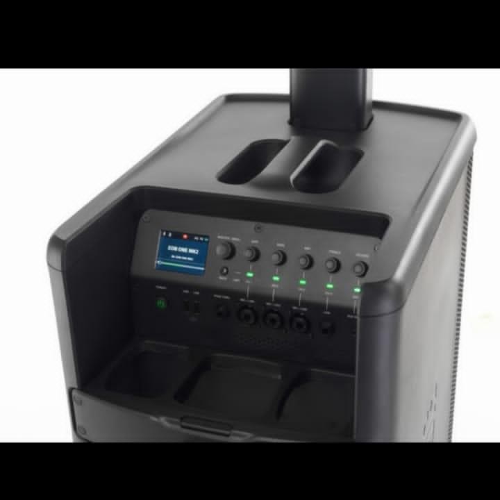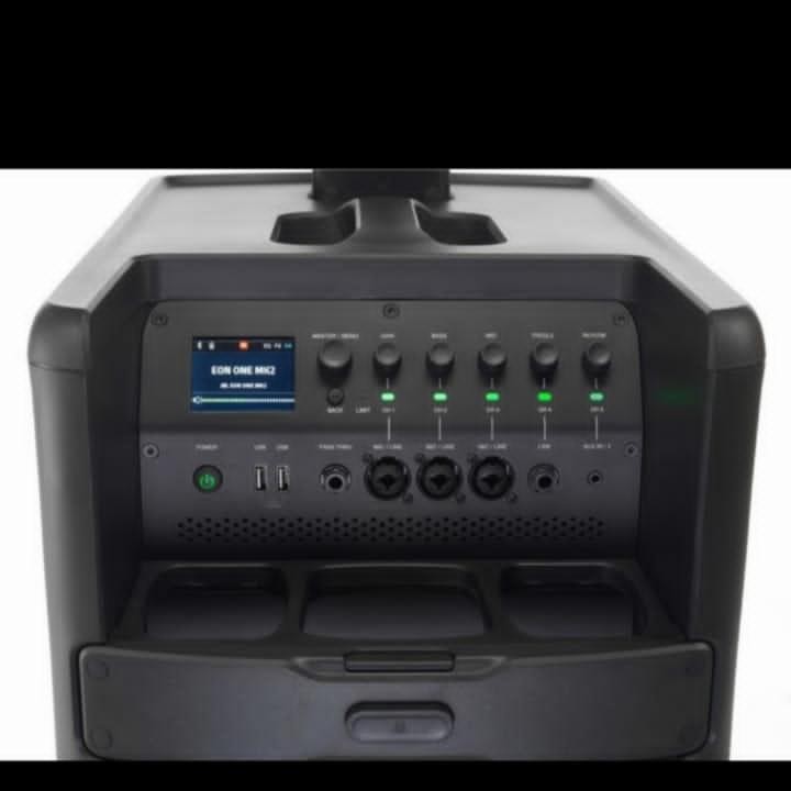 JBL EON ONE MK2 Adalah paket speaker PA Kolom aktif dengan baterai yang merupakan unggulan di kelasnya. Mixer digital 5-channel, dbx dan DSP Lexicon, fungsi bluetooth dan aplikasi kontrol universal yang menjadikan portable speaker ini dapat dibawa dengan satu tangan. EON ONE MK2 menghadirkan kualitas suara legendaris JBL, di gabungkan dengan optimalisasi geometris, 8 tweeter array berbentuk huruf C, dengan woofer 10 inch yang menghasilkan kejernihan suara yang berkelas dan mengcover sampai dengan 37 hertz, dengan dispersi lebar dan output maksimal 123 dB. EON ONE MK2 dibuat untuk keserbagunaan dan kemudahan penggunaannya. Hadirkan Suara khas yg anda inginkan dalam sekejap, dan berkat rangkaian lengkap efek dan preset dari Lexicon serta DBX, dengan kendali untuk anda yang masih pemula sampai ke tingkat lanjut. Performa Daya Variabel yang secara otomatis mengoptimalkan kinerja daya untuk pengoperasian A.C atau baterai. Streaming audio Bluetooth dan pengoperasian baterai enam jam melengkapi keunggulan sistem serba guna ini. EON ONE MK2 sangat ideal untuk berbagai pengguna, mulai dari pengamen dan penyanyi/penulis lagu yang mencari suara berkelas tanpa daya listrik, hingga para pendidik dan penyedia perhotelan yang memprioritaskan persiapan yang cepat serta kemudahan penggunaan, hingga rumah ibadah dan perusahaan rental yang membutuhkan perangkat portabel. Tipe Sistem: Speaker Kolom PA Aktif Ukuran Woofer: 10-inci Ukuran Tweeter: 2-inci Jumlah Tweeter :8 Maksimum SPL :123db/119dB AC/Baterai Rentang Frekuensi (-10 dB) :37-20kHz Rentang Frekuensi (-3 dB) :45-20kHz Dispersi Horisontal :140 ° Dispersi Vertikal :30° Peringkat Daya :Peak 1500W; 400W RMS Masukan Daya AC :300W 100-230V AC 50-60Hz Impedansi Masukan :4kΩ kombo seimbang; 2MΩ Jack Hi-Z seimbang; 10kΩ 3.5mm ujung tunggal 2 saluran Frekuensi Crossover I/O :230Hz 3 - XLR Combo Jacks ; 1 - 1/4” Hi-Z ; 1 - 1/8”/BT Summed ; 1 - 1/4” balanced Original product