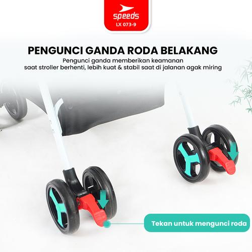4. Roda Karet 360 Derajat: Stroller ini dilengkapi dengan roda karet yang dapat berputar 360 derajat, sehingga mudah untuk mengemudi dan manuver, bahkan di ruang sempit sekalipun. Anda dapat dengan mudah bermanuver di berbagai permukaan tanah.