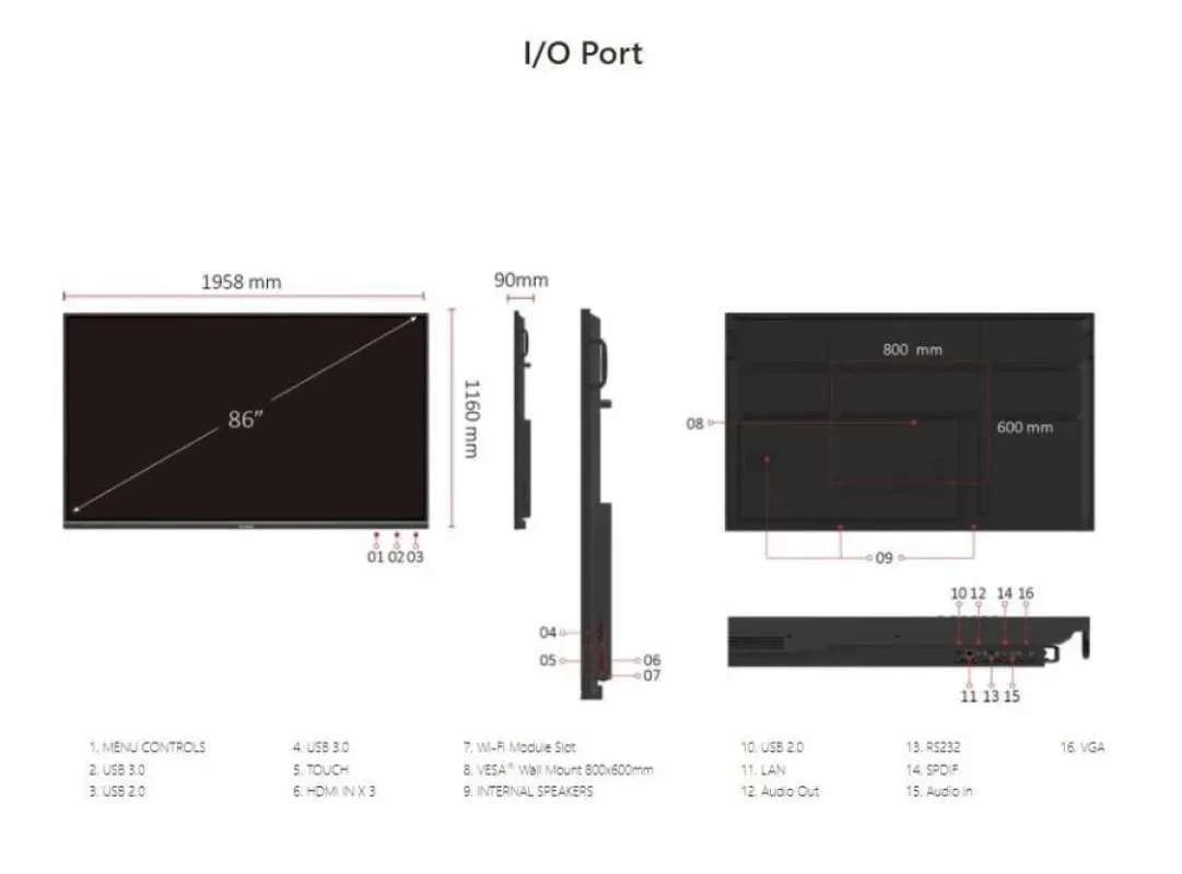 Display Area (mm): 1895.04 (H) x 1065.96 (V) (85.6"diagonal)