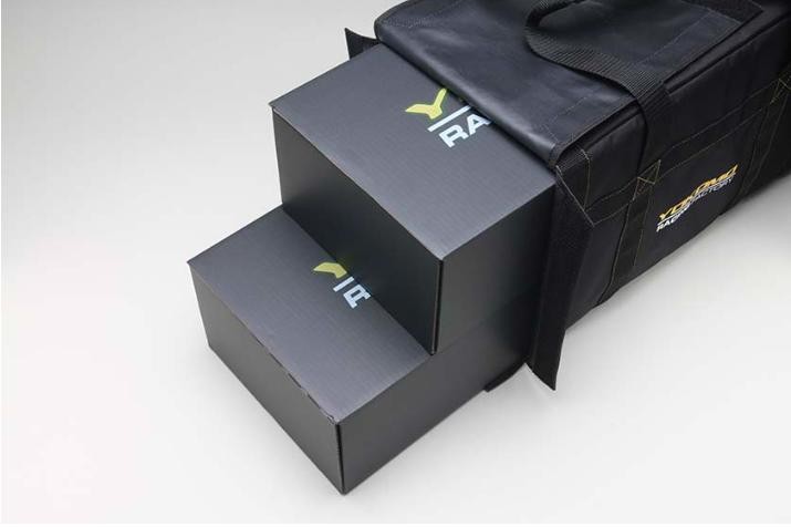 This handy pit bag is perfect for storing machines and peripherals. It has a large capacity that can store a 1/10 scale drift car with the body attached, and has two inner boxes.