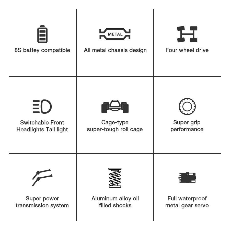 3.The cage-type super-tough roll cage protects the body in all directions while being more emulated. And there are extremely extreme off-road racing style cockpit interiors and various appearance simulation details